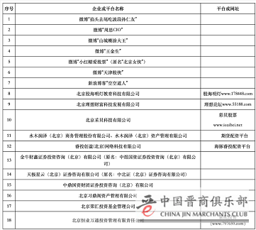 北京证监局4月21日公布《北京辖区不具备经营证券期货业务资质机构名单(第七批)》,包括18家企业或平台。其中,被点名的“天津股侠”、“小红帽爱股票”、“王金生”等微博“大V”均坐拥百万级粉丝。