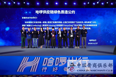 2020年11月,在哈啰第三届生态伙伴大会上,哈啰面向近400家生态伙伴发起“绿色质造公约”,倡导践行“生态优先、绿色质造”,遵循减量化(reduce)、再使用(reuse)和再循环(recycle)的3R原则,通过资源高效利用、循环利用,实现社会、经济和环境可持续发展.