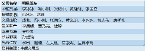 吴秀波曾是幸福蓝海的重要股东,李易峰、贾乃亮、杜淳则出现在星美联合的股东名单上。