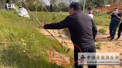 近日,云南昆明。滇池东岸一高尔夫球场侵占滇池一级保护区,相关单位弄虚作假,将树枝插入浅层表土冒充植树,被中央环保督察组现场打假,要求党工委书记单手拔“树”。