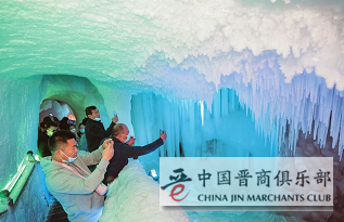 宁武县芦芽山景区,游客正兴致勃勃地在万年冰洞“探秘”。