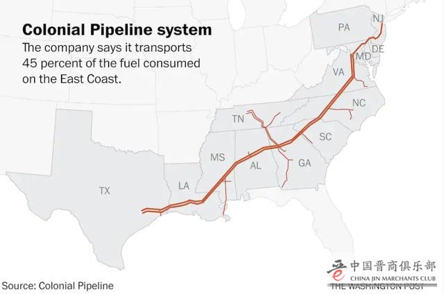 科洛尼尔公司位于佐治亚州。《华盛顿邮报》介绍称,每天从美国墨西哥湾沿岸的炼油厂,运输250万桶的汽油、柴油、飞机燃油,至人口稠密的美东地区,如纽约、华盛顿、亚特兰大等地,管线总长逾 5500 英里。其运输量占美国东海岸供应量的45%,影响5000万美国人。