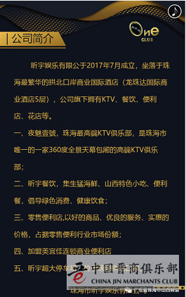ONE CLUB作为珠海NO.1的高端订制型KTV,是行业内订制经营的先行者。耗资近2千万打造集休闲、娱乐、餐饮、订制服务为一体的奢华订制高端KTV航母,秉承“顶级的设备、顶级的环境、顶级的模式、顶级的服务”的全方位服务宗旨,集720°无边际主题区、酷炫体感游戏、顶级专业影音设备、实时更新创新玩法、卓越的会员服务体系众多优势于一体。