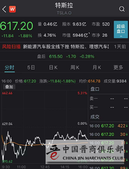 昨夜美股,特斯拉股价一度跌超5%,盘中自4月来首次跌破600美元关口;截至收盘,其跌幅收窄至1.88%,市值蒸发114亿美元,约合人民币732亿元。