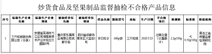 据本次市场监管总局组织食品安全监督抽检信息显示,三只松鼠分装的开口松子,规格型号为160克/袋,生产日期为2020年5月23日,过氧化值(以脂肪计)检验结果为2.2克/100克,而标准值为≤0.50克/100克,超标幅度为4.4倍。