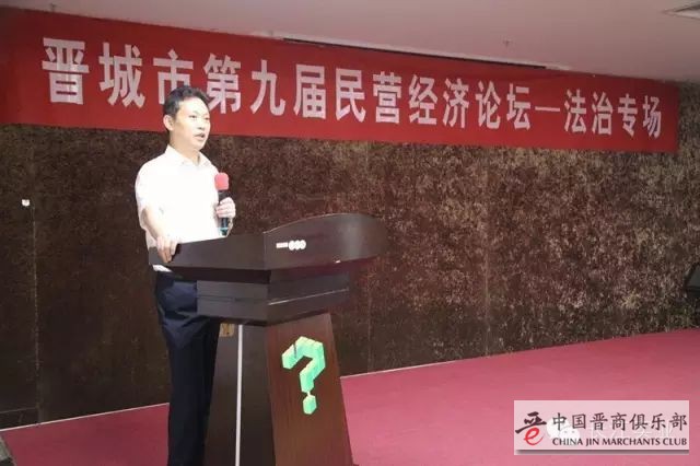 常建瑜会长以《赢在投资—物权法视野下的企业产权风险与应对战略》为题拉开了《晋城市第九届民营经济论坛——法制专场》序幕。