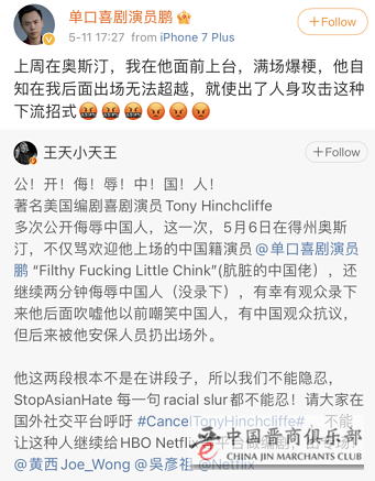 “‘肮脏的中国佬’不是喜剧,就是歧视。”