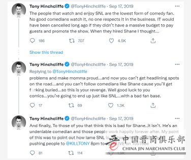 这件事在美国喜剧圈引发震动,当时辛奇克里夫就对SNL的决定感到不满,连续多天发推,大骂SNL low爆,批判他们想毁掉一个真正有才华的喜剧人。