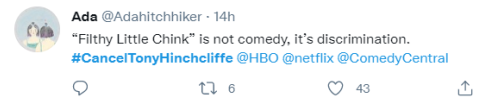 网友@王天小天王 (@dawn_wanders)在推特和Ins发起的#CancelTonyHinchcliffe(开除托尼·辛奇克里夫)的话题,喊话奈飞等流媒体平台和及其任职的节目与其解除合同,也得到了不少人的响应。