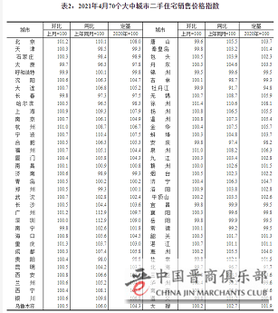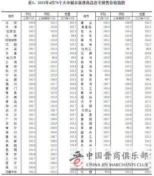 2021年4月份70个大中城市商品住宅销售价格变动情况: