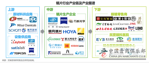 眼镜产业链主要分4个环节:原料、设备、镜片/镜架制造、销售终端。