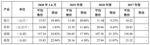 公司在招股书中称,受限于上游精细化工原料供应状况、生产技术水平以及生产工艺中部分环节的环保要求,公司尚无法直接生产折射率1.67及以上的树脂单体,主要靠向韩国KOC及其关联方三井中国、丹阳KOC采购。2019年数据显示,折射率1.67及以上的镜片收入占比达26.19%,毛利率明显低于其余折射率镜片。