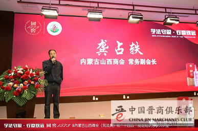 商会常务副会长龚占轶为活动致辞,他首先感谢会员企业泸州老窖国窖1573蒙西片区呼和浩特城市经理张孟申同志对此次活动的承办,感谢会员企业的积极参与,代表商会常务理事会对前来参加此次活动的领导、嘉宾、会员、主讲老师表示真诚的感谢和诚挚的敬意。他就举办此次活动的想法和考量向大家做了介绍。第一,举办此次讲座是商会企业现实存在问题的需要;第二、是商会整体素质提高的需要;第三,是商会提高服务会员的能力和水平的需要。他希望大家认真听讲,结合企业自身存在的问题和不足加以理解,掌握运用法律武器维护自身合法权益,认清形势,精准把握企业在市场当中的定位,有所为而有所不为,量力而行,在市场经济活动中使自己立于不败地位。
