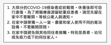 值得一提的是,16日,台湾流行疫情指挥中心公布的防疫指南提到,大部分新冠肺炎患者的症状都很轻微,基本上在家休养就可以自行康复了的,加上近日确诊个案激增,为了把资源留给重症患者,所以要求确诊个案在未接到通知前,先在家等疫调人员的通知。