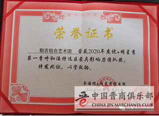 2021年5月8日,商会“额吉组合艺术团”荣获2020年度优+明星秀“第一季呼和浩特选区最具影响力团队奖”。