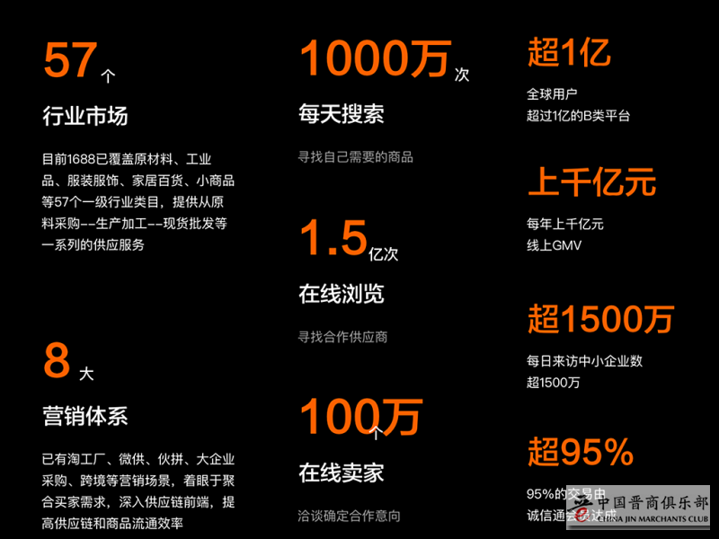 为何说中小企业更应该选择阿里巴巴1688这种电商平台?因为作为全球最大的B类平台,1688全球用户已经超过1亿,线上MGV超过1000亿,其蕴含的商机是非常大的,而且其To B的平台特性更加切合中小企业的交易模式。