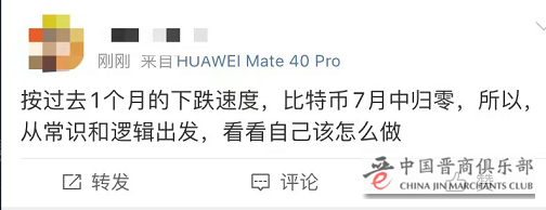 在社交网络上,有的人惊呼“快跑”“之前比特币能买一辆特斯拉,现在只能买北汽新能源了”;有的投资者“执迷不悟”,“当大家都恐慌害怕的时候,反而是机会”;还有的仿佛看透了币圈的魔幻,预测“比特币7月中归零”。