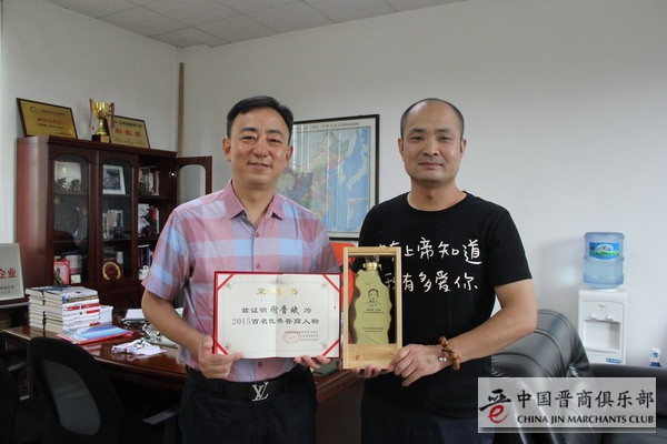 谢晋斌董事长与优秀晋商奖杯