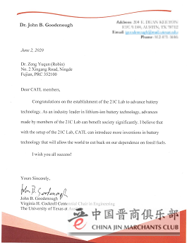 (锂离子电池之父Goodenough给宁德时代的贺信)