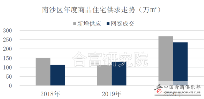 土地的供给,也大大加大了片区新房供应,数据显示,2020年全年南沙网签成交234万㎡,同比上升81%,创下近三年新高。