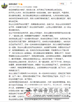 23日,参赛选手张小涛发布微博称