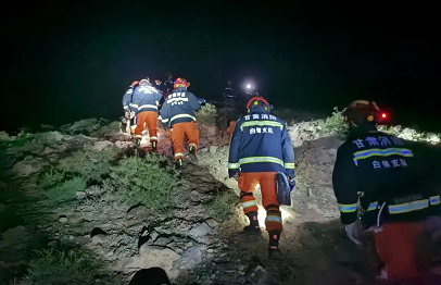 5月23日凌晨,消防救援人员搜救失联人员。(黄河石林山地马拉松百公里越野赛失联救援指挥部供图)