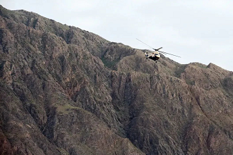5月23日,直升机在事发区域搜救失联人员。 新华社记者 范培珅 摄