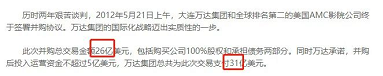 但万达集团此次的公告中却与上述数据不符,表示只花了7亿美元。对此,万达集团董事长王健林曾表示:所谓31亿美元投资是指7亿美元现金,加上19亿美元债务和5亿美元设备改造费用,债务仍然是AMC的债务,设备改造费通过上市募资手段解决,万达集团实际现金投资只有7亿美元。