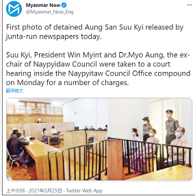 此外,“今日缅甸”报道称,在听证会结束后,全民盟高级人物、内比都市长妙昂(Myo Aung)的律师登莱敦(Thein Hlaing Tun)因煽动罪被捕。