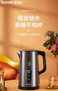 苏泊尔低音电热水壶SW-17J63A实时显温,温暖常伴你身边。