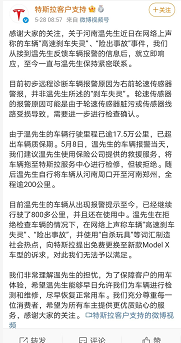 5月28日,“特斯拉客户支持”微博回应了车主“高速刹车失灵”指控,全文如下: