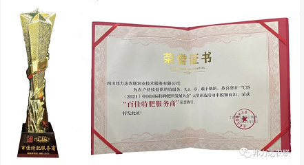 邦力达农联凭借其优质特肥和农技推广服务,切切实实为广大种植者创造了更高的农业价值,深受农户的信赖,助力农业发展,这一次荣获2021年CIS“百佳特肥服务商”,是CIS对我们为农服务的肯定,更是种植户对我们工作的认可。