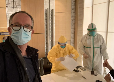 达萨克此前在中国结束隔离时,与医护人员合影 图自社交媒体