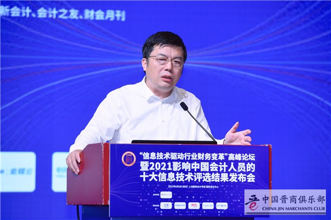 上海国家会计学院党委书记、院长李扣庆教授在开幕致辞时表示影响中国会计从业人员的十大信息技术评选首次活动是在2002年,从2017年恢复举行迄今进行到第五年,活动已经成为中国会计行业非常有影响力的品牌活动。十大信息技术希望通过开展评选活动让更多人了解、关注、使用、分享会计技术,推动中国会计科技的进步,进而推动整个中国社会的进步。他指出,整个社会对于2021年的评选工作给予了更多的关注和支持,从另一个角度说明了十大信息技术评选越来越代表中国会计科技行业专家们和会计从业人员的基本意见。同时,他对会计科技的发展进行了展望。人类生存发展的需求驱动着人类社会的文明进步。会计科技之所以能够得到快速的发展,背后的推动力量是人类生存和发展的新需求。随着十大信息技术评选工作的不断推进,当前已经有了非常丰富的数据积累,在这个基础上,未来可以开展进一步的研究,思考推动十大信息技术发展背后的驱动力到底是什么。例如对技术开发者或者技术服务提供者来说,是什么促使他们专注于这些技术的精进;从需求者的角度,使用或者购买特定的技术服务,又是为了达成何种目标。最后,他对会计从业人员表达了期许。中国的会计人,特别是肩负着推动会计科技进步的人,需要思考如何通过推动会计科技的发展来推动中国会计文明的进步。如何使新时代中国的会计文明,在全球发挥更大的影响力。如何通过会计科技的发展,为诚信中国、健康中国、绿色中国的建设等做出更大的贡献。对于从事会计科技发展的人员,包括教育工作者,在推进会计科技发展的过程中,需要朝着明理、增信的方向、用更高的道德和价值标准,着眼于社会更长远的发展,共同推进中国会计科技的进步。