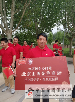 为庆祝中国共产党建党100周年,6月6日下午,在京28省商会秘书长和会员代表120余人在北京电影小镇共同举办“民企跟党走 颂歌献祖国”——快闪活动。北京山西企业商会(中国晋商俱乐部联合发起机构)党支部书记、驻会副会长邢秀乔,党支部成员、副会长刘福堂,副秘书长王国栋、李欣参加活动。