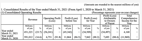 尼康于5月13日公布了其2021年财年的财务数据,截至2021年3月31日,过去一个财年尼康总营收为4512亿日元(约合人民币264亿元),同比减少23.7%。营业利润为亏损562亿日元(约合人民币32亿元),同比暴跌933%。归属于母公司所有者亏损344亿日元(约合人民币20亿元),创下新高,值得一提的是2020财年归属于母公司所有者的利润为76亿日元(约合人民币4亿元),2021财年较2020财年同比下降548%。