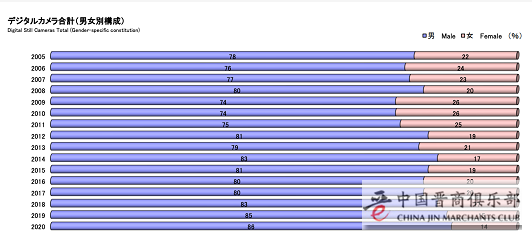从购买者性别构成来看,购买数码相机的人群大多是男性,而且这比列在进一步扩大,到2020年,男性购买者占到了86%,女性则只有14%。