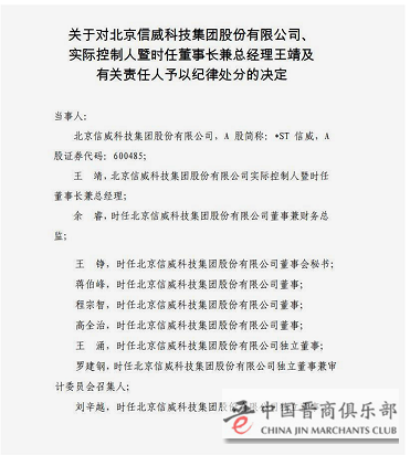 而王靖本人,作为公司实际控制人暨时任董事长兼总经理,未能确保公司依法合规运营,对公司的上述违规行为负有主要责任。上交所对其公开谴责:10年内不适合担任上市公司董事、监事和高级管理人员。