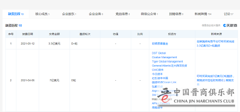 天眼查数据显示,此前叮咚买菜已历经10轮融资,最近的一轮就是软银集团的3.3亿美元融资。