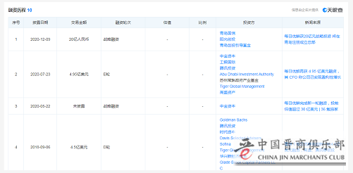 天眼查数据显示,每日优鲜同样是已历经10轮融资,最近的一轮则是青岛国资的20亿元融资: