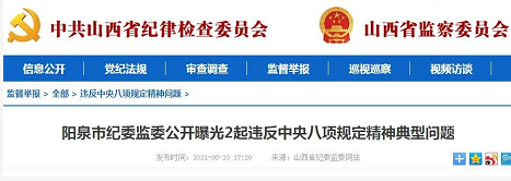 近日,阳泉市纪委监委公开曝光2起违反中央八项规定精神典型案例。具体如下