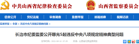 近日,长治市纪委监委公开曝光5起违反中央八项规定精神典型案例。具体如下