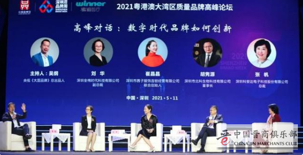 央视《大国品牌》总出品人吴纲,与深圳全棉时代科技有限公司副总裁刘华,深圳市茜子服饰连锁经营有限公司联合创始人崔晶晶,深圳市北科生物科技有限公司董事长胡隽源,深圳科安达电子科技股份有限公司总裁张帆,围绕“数字时代品牌如何创新”,就“数字经济如何支持新发展格局?”,共同探讨了“企业如何运用商业创新打破增长瓶颈”、“数字时代,如何建立自己的品牌语言,打出差异化”、未来值得关注的商业机会和发展趋势”、“不断变化的互联网发展趋势中,企业需要注意哪些风险”等话题。