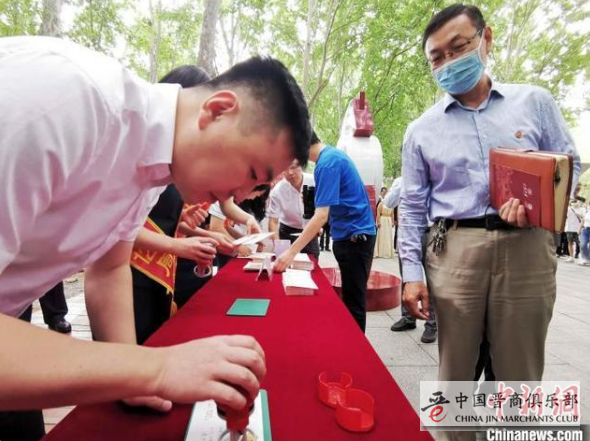 山东大学党委书记郭新立在现场邮寄校庆纪念封和专属明信片。 冯帆 摄