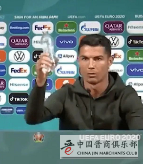 据环球时报综合《每日邮报》《赫芬顿邮报》报道,在当地时间6月14日的发布会上,C罗挪开桌上两瓶可乐,随后拿来一瓶水说,“喝水,不要可乐”。