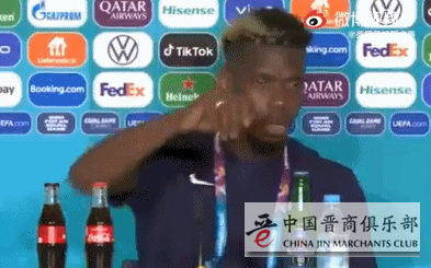 值得注意的是,在法国队与德国队比赛的赛前发布会上,法国队中场球星博格巴也模仿起了C罗——他在发布会移走了面前的赞助商啤酒。