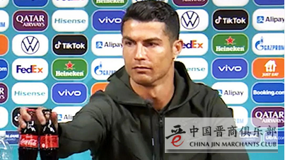 此外,从C罗移开可乐的“出圈”视频中也能清晰看到,背景墙上中国品牌的身影。