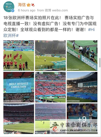 16日下午,本届欧洲杯赞助商海信更是直接发布18张赛场实拍广告照片,证明赛场实拍广告与电视直播一致。
