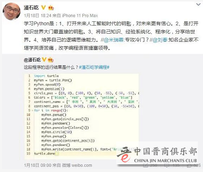 他甚至学起了编程,2020年1月,潘石屹曾发微博表示:“要开始学Python了”,作为给自己的人生礼物。