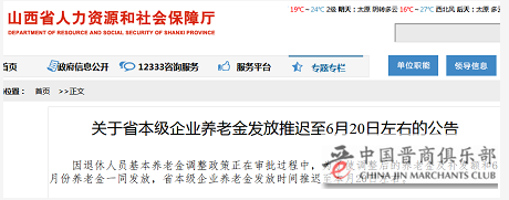 由于目前山西省退休人员基本养老金调整政策正在审批过程中,为了使调整后的养老金及补发额和6月份养老金一同发放,故推迟发放。